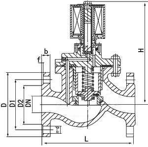 本閥是有副閥和主閥兩大部件構(gòu)成的先導(dǎo)式二次開闊的電磁閥。是靠副閥的啟閉來控制主閥的通斷。根據(jù)斷電時(shí)所處開關(guān)狀態(tài)的不同,可分為常閉電磁閥和常開電磁閥。常閉電磁閥,在段點(diǎn)常位時(shí),副閥口封閉,主閥呈斷路,當(dāng)電訊號(hào)進(jìn)入導(dǎo)閥線圈時(shí),活動(dòng)鐵芯受電磁力作用吸上打開副閥口,主閥閥杯內(nèi)壓力導(dǎo)速消失,介質(zhì)壓力將主閥閥杯托上,開啟主閥,工作介質(zhì)便可流通。但當(dāng)電訊號(hào)消失時(shí),活動(dòng)鐵芯復(fù)位,封閉住副閥口,工作介質(zhì)自平衡孔進(jìn)入閥內(nèi),當(dāng)壓力趨于平衡時(shí),靠主閥彈簧,閥杯自重及介質(zhì)壓力使閥杯下移,嚴(yán)密封住主閥口,閥有呈封閉狀態(tài)。常開電磁閥,在斷電常位時(shí),有彈簧作用,副閥口打開,主閥流通。當(dāng)電訊號(hào)進(jìn)入副閥線圈時(shí),活動(dòng)鐵芯受電磁作應(yīng)吸下,當(dāng)壓力趨于平衡時(shí),靠主閥彈簧、閥杯自重及介質(zhì)壓力使閥杯下移,嚴(yán)密封住閥口,閥門呈關(guān)閉狀態(tài)。當(dāng)主閥斷電時(shí),電磁力消失,副閥找開,主閥杯內(nèi)壓力迅速消失,介質(zhì)壓力將主閥閥杯托上,開啟主閥口,介質(zhì)流通,閥呈開啟狀態(tài)。