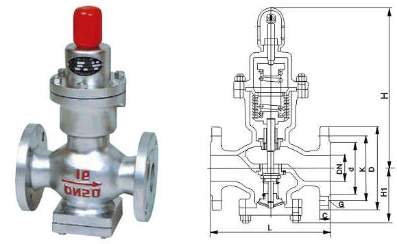 1、閥前進口介質壓力從閥瓣和閥體密封圈開啟間隙進入體腔使介質壓力流滿波紋管的組合箱,波紋管和彈簧因受介質壓力的擠壓而壓縮,閥瓣隨著閥桿位移,閥瓣產生對閥體密封圈的關閉,將閥前介質截止,不作閥后介質壓力的補充。當閥后的介質壓力降低,波紋管因受調節彈簧的徑項力,使波紋管疊紋變形,閥桿將閥瓣頂開。使介質通過閥體密封圈補充閥后壓力的降低。