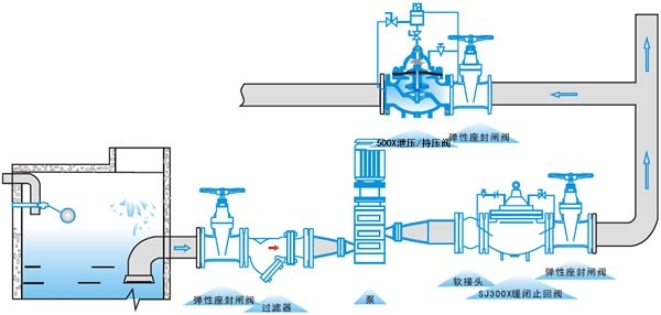 500X泄壓/持壓閥主要用于消防或其他供水系統中,以防止系統超壓或維持消防供水系統的壓力。消防泵關閉后還可以減小水錘的沖擊。也用于大型供水系統的水錘裝置。并且閥門控制系統的進口處裝有一個清潔濾網,利用流體特性,使比重較大、直徑較大的懸浮顆粒不會進入控制系統,確保系統循環暢通無阻,使閥門能安全可靠地運行。系統動作平穩、強度高、使用壽命長。